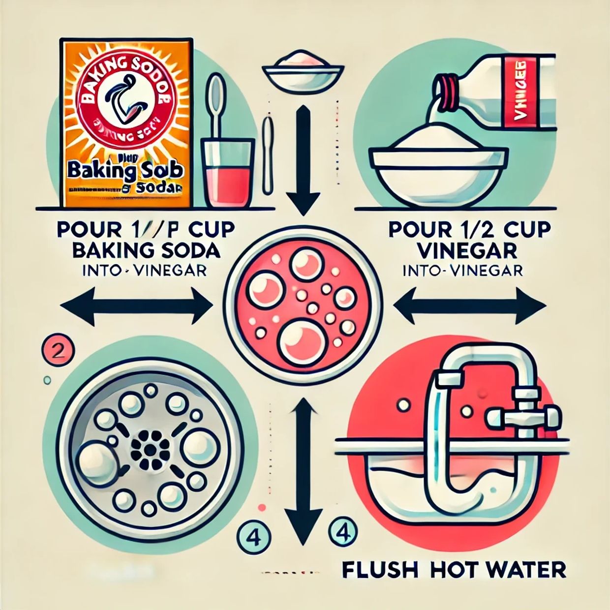 Clogged drains can lead to a nightmare situation. Instead of resorting to harsh chemicals, turn to a natural alternative. Go to your drain and pour half a cup of baking soda, then half a cup of vinegar Cover the drain and allow the fizzy reaction to work its magic for around 15 minutes. Rinse with hot water, and your drain should run smoothly again.