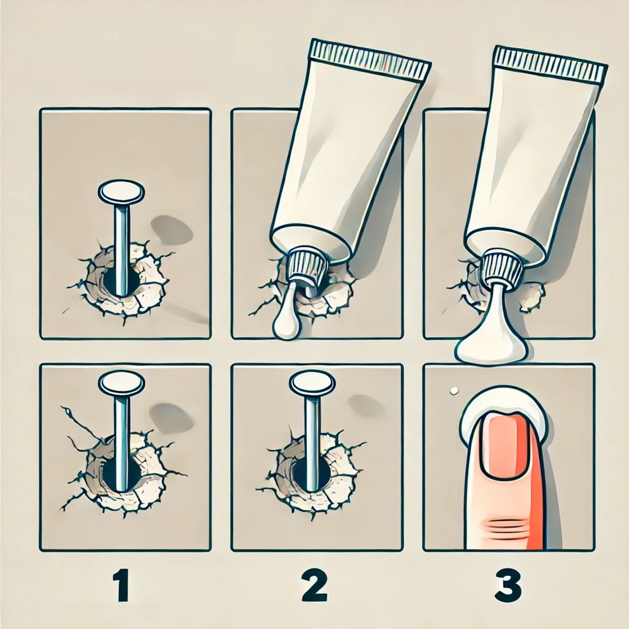 Thinking of repainting or do you need to accidentally cover a tiny nail hole? A little white toothpaste can be a good fill in a pinch. Just squish it into the hole, smooth it with your finger, and let it dry. It’s not a professional patch, but it gets the job done in a pinch.